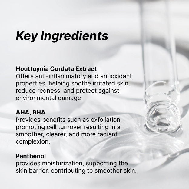 • Gentle Exfoliation: AHA and BHA work together to gently exfoliate, promoting a smoother and brighter complexion.
