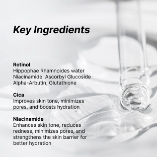 Water, Dipropylene Glycol, Glycerin, Niacinamide, Glycereth-26, 1,2-Hexanediol, Panthenol, Propanediol, Diphenyl Dimethicone, Centella Asiatica Extract, Scutellaria Baicalensis Root Extract, Cordyceps Militaris Extract, Glycyrrhiza Uralensis (Licorice) Root Extract, Lactobacillus Ferment, Hydrogenated Lecithin, Butylene Glycol, Triethylhexanoin, Madecassoside, Asiaticoside, Madecassic Acid, Asiatic Acid, Retinol, Lecithin, Polyglyceryl-10 Oleate, Allantoin, Tromethamine, Hydroxyacetophenone, Dipotassium Glycyrrhizate, Carbomer, Polysorbate 80, Disodium EDTA