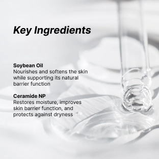 Water, Butylene Glycol, Propanediol, 1,2-Hexanediol, Niacinamide, Panthenol, Glycerin, Glycine Soja (Soybean) Oil, Ceramide NP, Ceramide NS, Ceramide AS, Ceramide AP, Ceramide EOP, Ethylhexylglycerin, Acrylates/C10-30 Alkyl Acrylate Crosspolymer, Tromethamine, Allantoin, Ammonium Acryloyldimethyltaurate/VP Copolymer, Hydroxyethyl Acrylate/Sodium Acryloyldimethyl Taurate Copolymer, Disodium EDTA, Adenosine