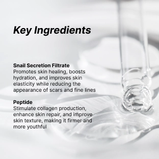 At the heart of the formula is Snail Secretion Filtrate, renowned in K-beauty for its ability to support skin regeneration, fade discoloration, and improve elasticity. It works in synergy with Glycerin and Caprylic/Capric Triglyceride to lock in moisture, leaving the skin soft, supple, and resilient.